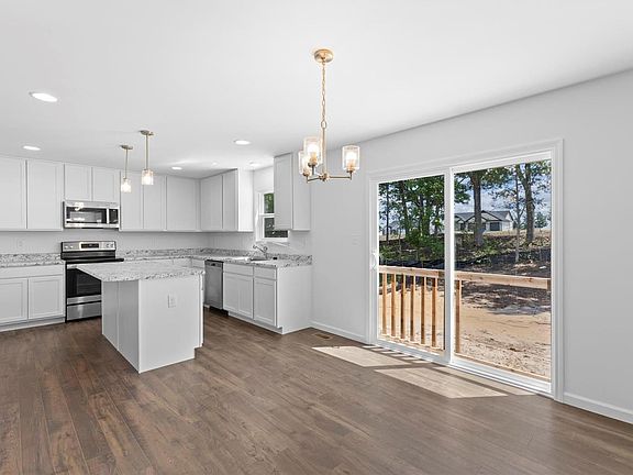 This Royal II two story 4BR 2.5BA home will be move in ready late Summer! Walkout homesite! 9ft ceilings, 6ft windows and wood laminate flooring throughout main floor! Open floorplan offers an expansive kitchen with center island w/breakfast bar, painted white 42in wall cabinets, walk in pantry, and stainless steel GE appliances. Large breakfast room with sliding glass doors to backyard. Spacious family room with window wall for natural light. Formal dining room, powder room and laundry on main level as well. Master suite upstairs with walk-in closet and private luxury bath with double bowl vanity, tub, enclosed toilet, and walk in shower, plus 3 additional beds and hall bath. Upgraded lighting, plumbing fixtures, and flooring! Lower level ¾ bath rough-in for future finish. Onsite amenities at Prairie Wind include a community playground, pavilion, and sports court. Peace of mind with McBride Homes' 10 year builders warranty and incredible customer service! Similar Photos Shown