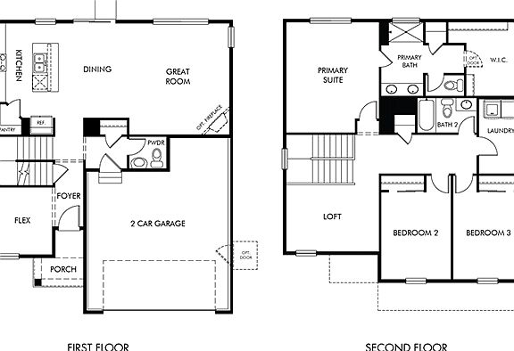 Open-concept floorplan with linen white cabinets, white and black granite countertops, taupe EVP flooring and gray carpet in our Contemporary Edge collection. Beautiful added features: fireplace, full unfinished basement and 5-piece primary bath.