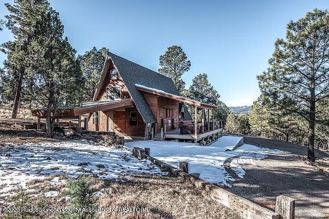 NEW LISTING! SNOWCAP LODGE!! IN BEAUTIFUL WHITE MOUNTAIN ESTATES!! SIERRA BLANCA VIEWS & FULLY FURNISHED! Super cabin in the pines, all decked out, literally, & ready for you to come up, enjoy a darling getaway & all the fun activities in Ruidoso/Alto area! 3 bedroom, 2 baths, updated, fully furnished including TV's inside & hot tub & big TV on the new deck! In exclusive area of larger, custom homes, great area to walk the dogs & kick back, relax. Up on a hill w/views of Sierra Blanca & forest. Deer, elk, turkey, fox, & where the eagles soar. Close to the Links Golf Course & walking trail around the Links, Grindstone Lake & all the fun activities such as hiking, biking, skiing, golfing or just get away to rest & restore! $379,000