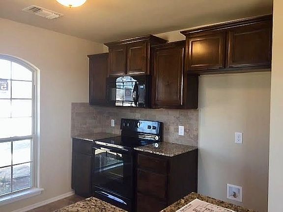 Beautiful colors, bring this home together very well! The granite kitchen tops look great with the custom maple cabinets in dark mahogany stain and the oil rubbed bronze fixtures tie it all together. Kitchen has pantry, eat in bar & tons of natural light. Kitchen opens into dining w/ great window seat in the same dark mahogany stain as the cabinets. Secondary bedrooms are off separate hallway from master w/ direct access to large bathroom, linen closet, & laundry. Within walking distance to large city park with soccer field, basketball court, playgrounds and walking trail. Easy access to Highway 9, Highway 77 and I-35, give homeowners in this community easy access to all areas of Norman and the OKC metro. All of this and more- installed alarm system, above range microwave, brick mailbox, and fencing included!