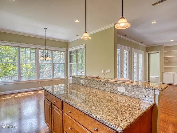 This beautiful brick home in coveted Tanbridge Park features an ideal floorplan with 3 bedrooms on the 1st level & FROG with half bath above the 2 car garage. Unwind in your soothing 1st floor Master Retreat with 2 closets, 2 sinks, large walk-in shower & separate jetted tub. Your Kitchen with granite countertops, stainless appliances and Breakfast Nook is open to the spacious Great Room with gas fireplace flanked by built-in bookshelves. Whether enjoying morning coffee or evening cocktails, you'll love spending time on your screened porch overlooking the privacy fenced yard with patio, where kids & dogs can safely play. Backing to a wooded area, you'll enjoy privacy, owls, hawks & other wildlife. PLUS walk, bike, or cruise on your golf cart to Mayfaire's movies, restaurants, shops, coffee houses, bookstore, gym & grocery stores, and the new Biggers Market. Or take an adventurous afternoon ride on the Cross City Trail to Historic Downtown Wilmington on the river. You're only minutes from Wrightsville's sandy beach & the Atlantic's shimmering ocean waves, and also conveniently near UNCW and ILM airport. Kids can even walk to Blair Elementary and Noble Middle Schools. Other perks of this wonderful home are high ceilings & tall doors, wood floors, new HVAC in 2022, irrigation system, front yard maintained by the HOA, large attic storage, and all appliances including the washer & dryer convey. Move right in & start enjoying the amazing lifestyle this home & area have to offer.