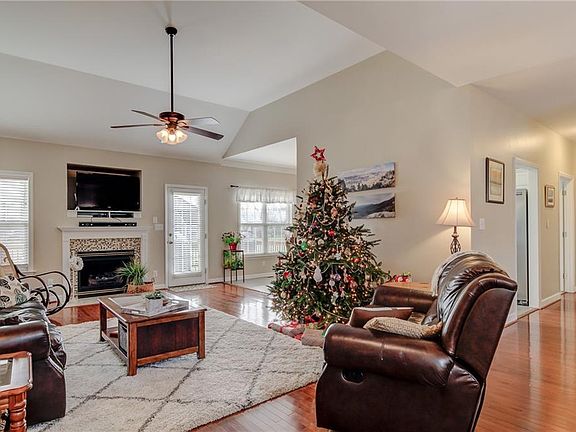 Well maintained & updated home with lake view. Features include 9 ft ceilings throughout, vaulted ceiling & gas logs in living room, crown moulding and chair rail in dining room. Wood flooring in LR & DR. Kitchen is highlighted by a tile backsplash, SS appliances, quartz counter tops and undermount sink. Split bedroom design. Master bedroom with ensuite featuring WIC, dual vanity and jetted tub. Ceiling fans in all bedrooms. Spacious back deck is perfect for entertaining. Two car attached garage.