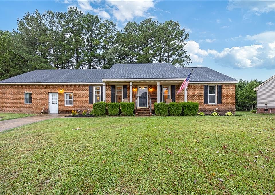 Welcome Home to this charming rancher in the Oak Manor section of Deep Creek! Tucked away on a quiet cul-de-sac, this unique Home features a large front porch that leads to main entry. Enter into foyer which opens to large den. Hall leads back to updated kitchen with wood cabinets, newer tops, gas range, LVT floors, and stainless appliances. Main level features primary bedroom with ensuite bath, hall bath, and two accessory bedrooms. Off kitchen is access to laundry room with steps up to expanded living space which is considered large fourth bedroom. Off this room is a finished room cooled by mini-split currently setup as media/rec room! Downstairs off laundry also with two separate entries (one on front and side) is access to in-law suite which is 5th bedroom. This area features a kitchenette, living room, bedroom, and full bathroom. Current owners gross roughly $12k per year as mid-term rental. Yard features deck, mature treeline, and oversized double shed! Call Today!