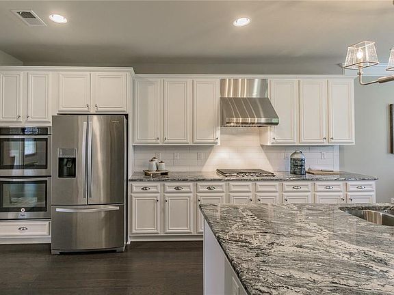 - Kitchen Features: Pantry, View to Family Room, Stone Counters, Kitchen Island, Pantry Walk-In, Breakfast Room, Solid Surface Counters, Cabinets White