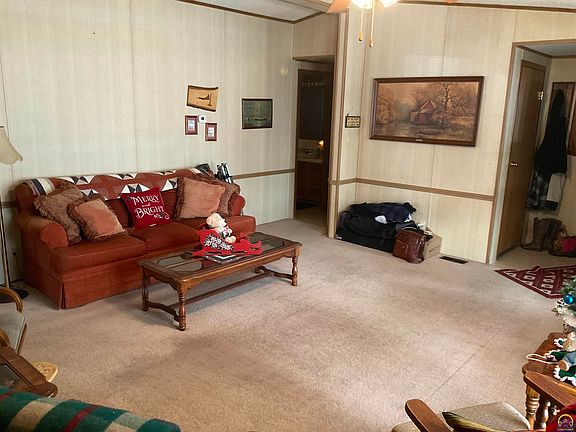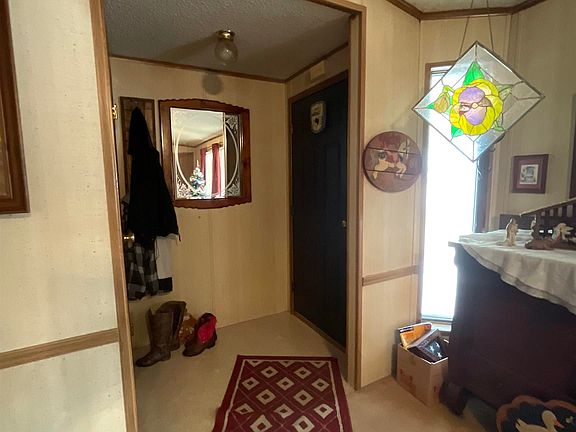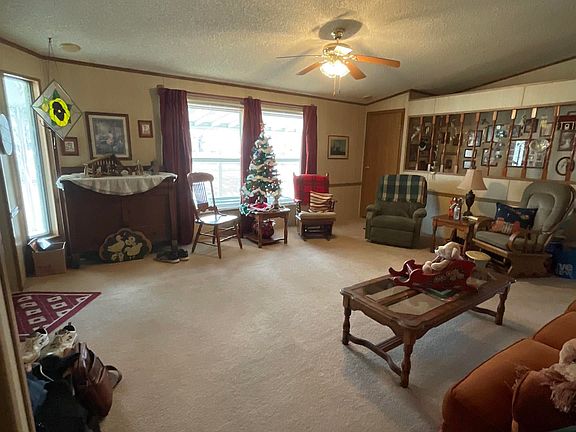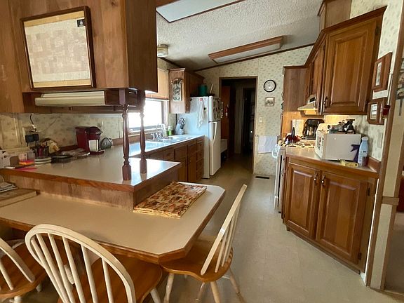 CORNER lot (27,225 sq ft) is the setting for this well taken care of manufactured home! Features include a spacious living room -large family room-formal dining/hearth room w/wood burning stove & lovely hutch built in & french doors leading out to a huge semi covered deck-kitchen has lots of counter top and cupboard space w/peninsula for more casual seating and just off that is a laundry area w/built in cabinets-large pantry & exterior door to another deck! Large master suite has his and hers closets-huge bath w/step in shower, double vanity and plenty of extra linen storage. 2 Secondary bedrooms and hall bath sit at the opposite end of this level. Then head down to the basement for gobs more storage room and 2 finished rooms (could be non-conforming bedrooms! Did I mention the full length covered front porch to watch the sunrises? And don't forget the over sized 2 car garage w/shelving-workbench & that handy additional 1/2 bath.