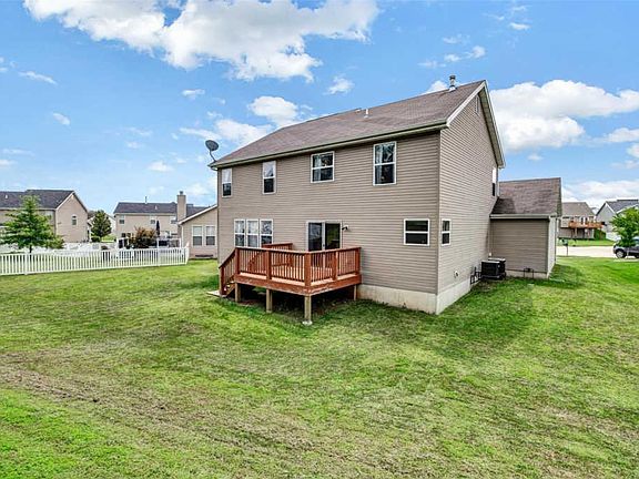 Four bedroom home with three car garage at the end of quiet cul-de-sac. Youâll love the location and layout of this move-in ready home. This spacious two-story home boasts more than 2,400 sq.ft. with an open floor plan. From the main entry youâll immediately notice the updated flooring and custom trim work. Main level has home-office, formal dining room, oversized family room, half-bathroom, main floor laundry and large kitchen with updated appliances and center island. Upstairs master bedroom has vaulted ceiling, walk-in closet and private en-suite with his-and-her sinks and separate tub and shower. Three additional bedrooms upstairs are all roomy with large walk-in closets. Lower level is unfinished and has egress window and rough-in for future full bathroom. Backyard has evergreen trees sitting atop a raised berm to provide year-round privacy. Dual zone climate control and large 3-car garage. Subdivision pool, sidewalks and streetlights make this neighborhood a great place to live.