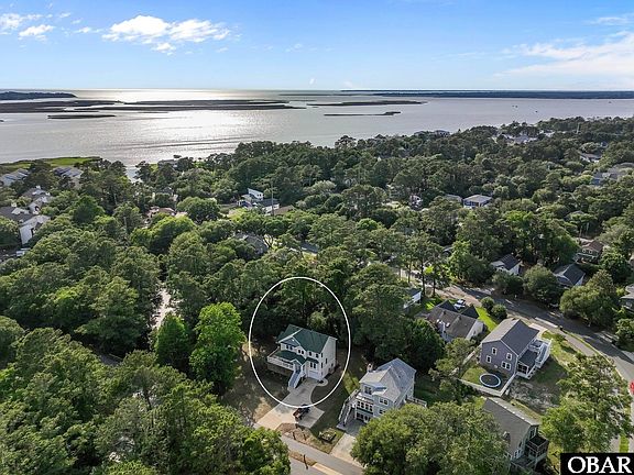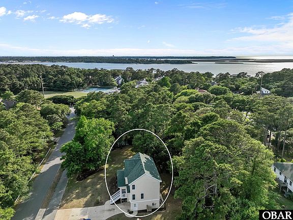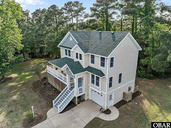 Located in the highly sought-after First Flight Village, this property is a custom-built,  immaculately maintained 4-bedroom, 3.5-bathroom home nestled on an oversized 14,000 sq ft lot - one of the largest in the neighborhood! This prime piece of property borders a tranquil creek with direct sound access through the canal and offers ample space to add the pool of your dreams. In fact, when the home was originally built, the seller intentionally left space on the side of the house to accommodate a future pool - a thoughtful design decision that adds incredible value and potential. Built by the original homeowner with thoughtful custom details throughout, this home was designed for comfort, privacy, and functionality. Each bedroom features walk-in closets, and the interior walls and floors are fully insulated for enhanced sound privacy - a detail rarely found in typical builds. Custom cabinetry is found throughout the home. Recent updates include: Brand New Fortified Roof (installed 2025), two new high-efficiency HVAC systems (installed 2025), new carpet throughout the home (2025), new ceramic tile flooring in the dining room (2025), and a new stove (also installed in 2025).The layout offers generous storage inside and out, with a full garage, an outdoor utility room, additional space under the decks, and multiple closets throughout the interior. The spacious living room is perfect for entertaining, featuring large windows that allow natural light to flood the space. The ground floor includes a bedroom that could be transformed into a private mother-in-law suite with its own entry door. This versatile space could also serve as a recreation room for children, a home office, and more, offering endless possibilities to fit your lifestyle. Enjoy outdoor living from the sun deck, covered deck, or the screened-in patio - plus, an irrigation system is already in place to keep the large yard lush and green. Additional 600 square feet of floored attic space for storage. Easy access through the ceiling of the third bedroom floor.  Located just minutes from beautiful beaches, shopping, and dining, this home offers the perfect blend of comfort and location, ideal for enjoying everything the Outer Banks lifestyle has to offer.