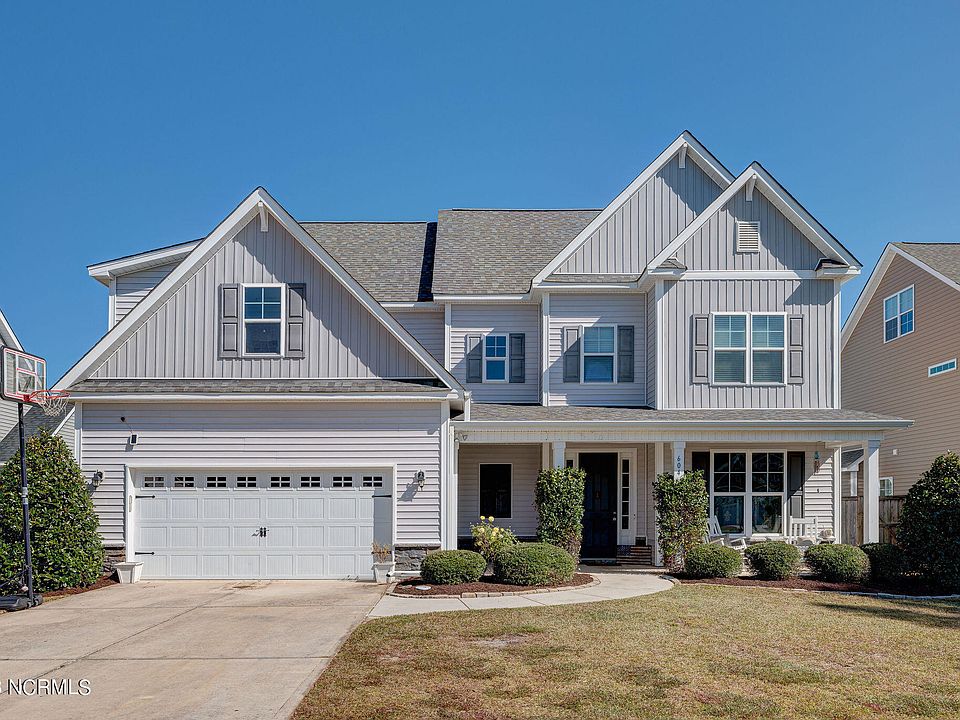 Welcome home to Wyndwater, a master-planned community in Hampstead, conveniently located only 10 miles from the beach, just miles from Kiwanis Park, the public boat ramp, and nearby to golf, local restaurants, and shops. Besides its prime location, 604 W Craftsman Way has optimal space / square footage for all your home needs and more. The main floor plan has a large living room with a gas fireplace connected to an open kitchen with a beautiful quartz countertop island, gas stove, wall oven and an abundance of cabinets and counter space. Easily entertain guests at the kitchen island, in the connected kitchen nook or in the formal dining room. Enjoy the backyard within the spacious, screened-in back porch or grill outside on the additional patio, all within a fully fenced-in yard. There is a flex room/bedroom with a full bathroom on the first floor nestled away from the main living space for excellent privacy. There is a mud room with built-ins connected to the 2-car garage entryway which makes an excellent drop zone for groceries, bags and coats. On the second level, you will find the spacious owner's suite with its ensuite bathroom and large walk-in closet. There is an oversized bedroom with an ensuite bathroom and a large walk-in closet with plenty of natural light. 2 additional bedrooms, a full hall bathroom, a large laundry room and storage closets finish off the extensive upstairs living space. Finally, walk up to the 3rd floor to utilize the expansive, finished bonus room with a room plumbed for a 5th potential bathroom. This is a rare opportunity to find a home with generous space and room to grow. Call today to schedule your private showing and make this gem your forever home.