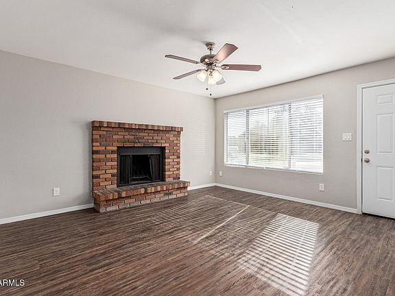 Welcome to your new home in Mesa! This move-in ready property offers 1 carport space + extended driveway. Inside, a spacious living room with a brick-accented fireplace and wood-style flooring welcomes you. Continue into the kitchen, boasting black matching appliances, fluorescent lighting, ample counters, and white cabinetry. The large family room is ideal for entertaining! Retreat to the main bedroom to find a walk-in closet and a private bathroom for added comfort. The backyard has a sparkling blue pool and so much play space. Prestigious location close to excellent schools, restaurants, shopping, and freeways! You don't want to miss this home!