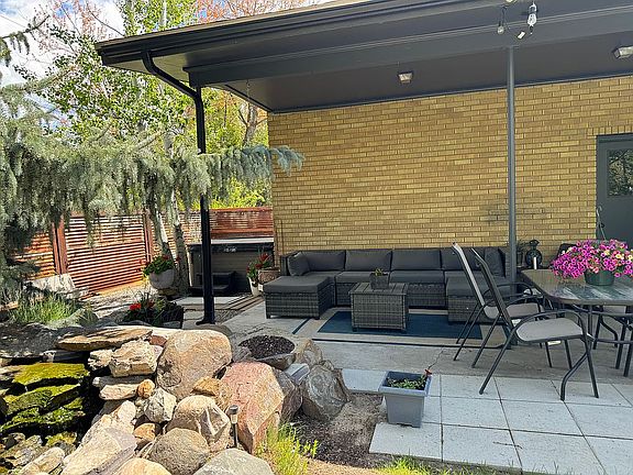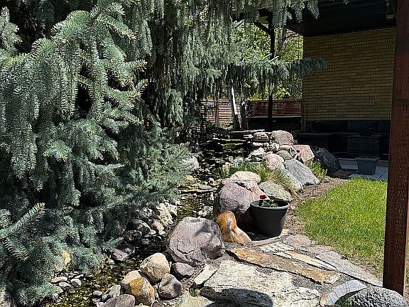 Outside of this home is peaceful and relaxing for all. For those wanting to play this yard has a fun area filled with rubber bark ready for your own swing set and trampoline and large grass area. And also has a unique and fun curbed sandbox with roadway for cars. For those wanting relaxation you can sit back and enjoy the landscaped waterfall/stream area next to the patio and hot tub area. Patio also has a custom made gas rock fireplace.