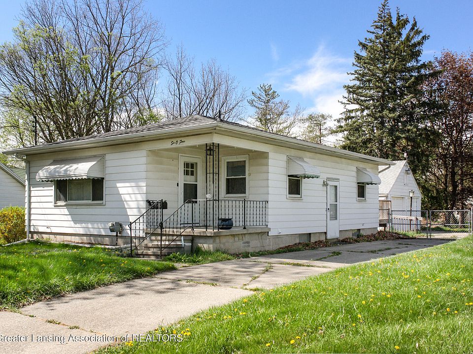Pull up and appreciate the fully fenced extra deep lot on this 2 bed 2 bath on Lansing's Southside. The covered front porch greets you. Inside the living room is quite large and with it's south facing window offers great light. Dining is just past living and adjoins kitchen. Front bedroom is off kitchen. Continue towards back hall and the larger rear bedroom is on your right. Barrier free bath is on your left. Laundry room/rear entry leads to the large deck with ramp to 2 car detached garage with openers. Downstairs is lightly finished with a 2nd full bath (all components separated. Large rec room to the right and den off rec room. Another room could be used as hobby space within main utility area. 35k in insulation and new roof on home and garage. Immediate occupancy-don't delay!