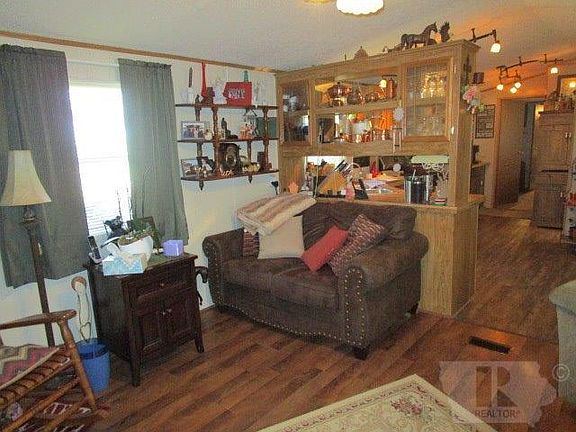 5 ACRES ON A PAVED ROAD surround this 3-bedroom manufactured home. Living room with adjacent updated kitchen & dining area. Master bedroom with closet & private bath with 2 additional bedrooms and hall bath. Laundry area. Back covered deck with patio in addition to gazebo & larger-than-most firepit area---all perfect for relaxing or entertaining. Separate building perfect for hobby area or mother-in-law suite. Separate garage w/lean-to, barn, bin with door perfect for outdoor storage. Mature trees & garden areas abound. Cherry, Pear, Apple & Walnut trees. All this on a paved road with city water & city sewer. Do not miss your opportunity.
