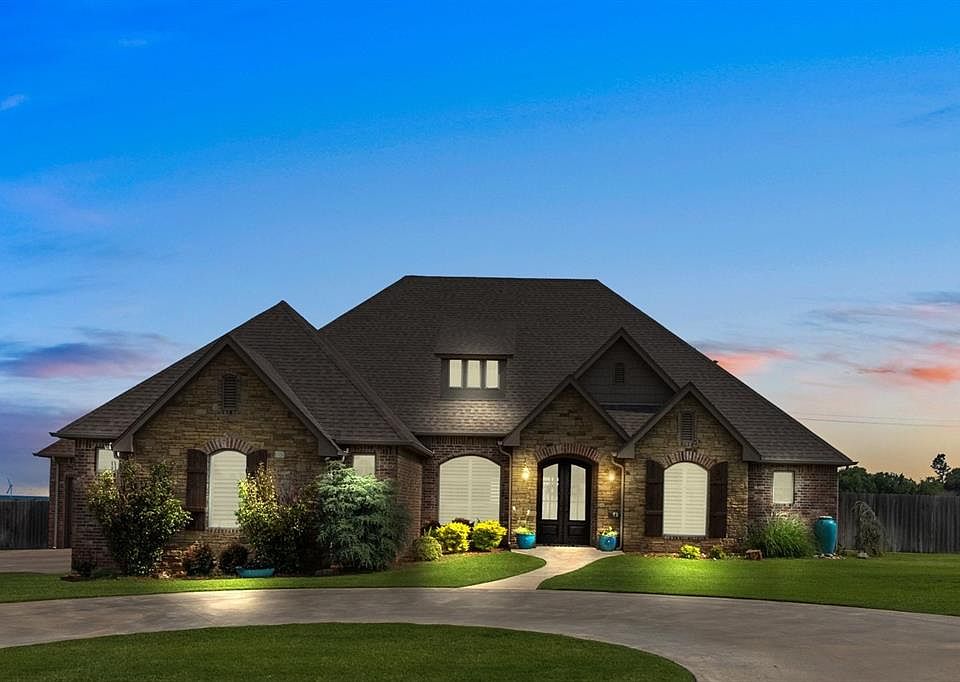 YOU will LOVE EVERYTHING about this METICULOUSLY MAINTAINED custom built home with with breathtaking views on over 2.5 ACRES with Mueller building! Offering the best of both worlds, the home is located within city limits and the back 1.83 acres with barn is out of city limits! This STUNNING home built by Stephen Tucker Homes, Inc. features a split bedroom, open-concept plan with office, formal dining, fireplace, security system, tankless hot water heater, water softener, 3 car garage, circle drive PLUS custom barn! The backyard is fully fenced with a large back porch, custom stone fire pit and circular stone wall seating surrounding fire pit. With all it offers plus the AMAZING Sunset views for miles, this backyard is an entertainers dream! The 30x50' MEULLER metal building features a 12x50' shed porch, 2- 10x10' overhead doors, spray foam insulation, LED lighting and has plumbing stubbed out and ready! Call TODAY to schedule your viewing!