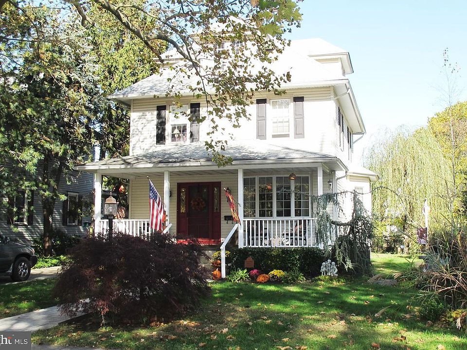 Nestled on a delightful tree-lined street with walking distance to town & the light rail commuter line. "Lovingly Maintained" & Tastefully UPGRADED describes this Charming/Curb Appealing Classic Colonial replete with a delightful Covered Front Porch. Easy flow floor Plan w/3 Bedrooms PLUS 2nd Level Home Office/Possible 4th Bed. Highlights: REMODELED Gourmet Kitchen w/Prep/Snack Island overlooking Comfortable Family Room w/New laminate flooring. HUGE Walk-Up Attic for Storage. Screened Rear Porch & Easy Care Siding. Estate Sale Conveyed 100% AS IS. NOTE: Seller has scheduled (& will pay for) replacement of the existing knob/tube wiring & the Main Electrical Panel. Includes 12 Month Home Warranty. PRICED to sell quickly...EZ to Show!