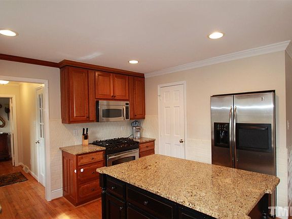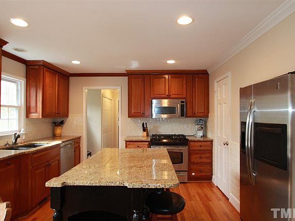 Great North Raleigh location in North Haven. 4 bedroom 2.5 bath on flat 0.42 care lot. New paint on entire interior. Hardwood floors throughout except bdrms. Custom kitchen cabinets, granite counter tops, tile backsplash. Family room w/ fireplace. Separate dining room w/ breakfast area in kitchen. Formal living rm that could be a office. Crown molding throughout house w/ wainscott in dining rm, entry foyer and staircase. Large multi-level deck. Large 2 car garage w/ storage rm. Near shopping. MUST SEE!!