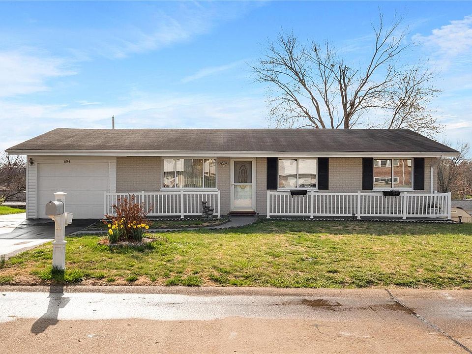 This ranch home is sure to check all the boxes! The curb appeal will lure you in! Sip drinks on the long covered front porch. Hardwood flooring flows on the main level. You'll be sure to notice the modern stone surrounding the fireplace in the living room that also features a big picture window. The dining area is complete with an island that makes meal prep easy. Granite counters and glass tiled backsplash make the kitchen shine! Access the composite deck from the dining area, perfect for summer BBQs. 3 bedrooms and 2 full bathrooms including the master ensuite complete the main level. The lower level finish is ideal with the walk-out to the paver patio and great usable yard. Partially finished with a large family room and sleeping room/ home office, with plenty of unfinished storage space. BONUS: all appliances stay including 2 refrigerators, washer/dryer, and leather sectional in lower level. Close to all amenities and just minutes from STL city life. *SHOWINGS BEGIN FRIDAY 3/15*