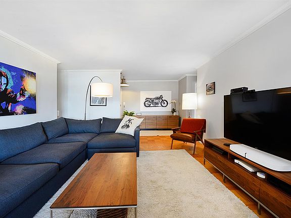 Vast retro modern perfect mid-floor one bedroom plus den (Currently being used as a dining room and easily converted to a 2nd Bedroom) is finally on the market! This eye catching home offers 1,100 feet of luxury living featuring mid-century accents and easy access to New York City in minutes via Public Transportation. Unit 14J offers a generous entry foyer, cavernous living room, full-size kitchen, and a formal dining room that can also be used as a den or possibly a 2nd bedroom. The extra-large bedroom fits a king size bed and offers plenty of closet space. There is even a walk-in closet off the entry foyer that can be converted into a 2nd bathroom. In addition to the unparalleled interior living space, there is a 200 square foot private terrace with stunning sunset views to assist with entertaining!!! Located within the Riviera Towers Community, this complex offers 24 hour security, on-site pool, on-site gym, and on-site parking. Not to be missed!!!