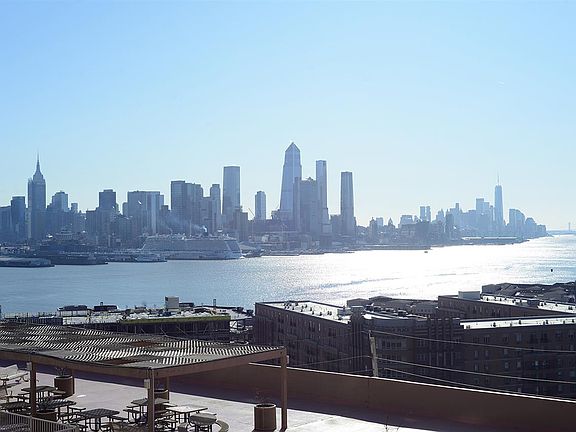 Stunning One Bedroom One Bath unit in perfect condition offers exquisite views of the entire Island of Manhattan and the Harbor of New York City. Vast interior living space of roughly 950 Sq Ft as well as a 200 Sq Ft Private Terrace makes this the perfect rental home. The newly minted bathroom is perfect for relaxing after a long day. The charming white kitchen offers charming casual luxury with stainless steel appliances, stone counter tops and soft wood and ceramic tones. Abundant closet space is available throughout the unit. All utilities are included in the rent Parking is generally available on-site for $115 per car per month through a third party. All utilities are included in the rent. 3E is located in a top tier property on Blvd East and provides 24 hour door staff, valet parking for guests, on-site pool and gym, on-site convenience store and 365/7/24 access to NYC Come and view today