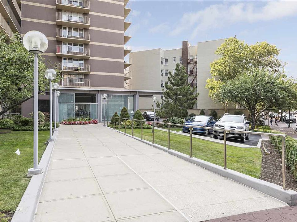 This unique studio offers 550 square feet of living space & 200 square feet of private outdoor space. Endless closet space & separate kitchen with newer cabinetry complete the package. Kitchen offers a dishwasher & built-in microwave. Living space offers newly refinished hardwood floors throughout. Building amenities include a 24-hour doorman, on-site parking ($115 per month), on-site gym ($165 per year), on-site convenience store & on-site management. NYC transportation is at your doorstep 24-hours a day. Cats welcome!
