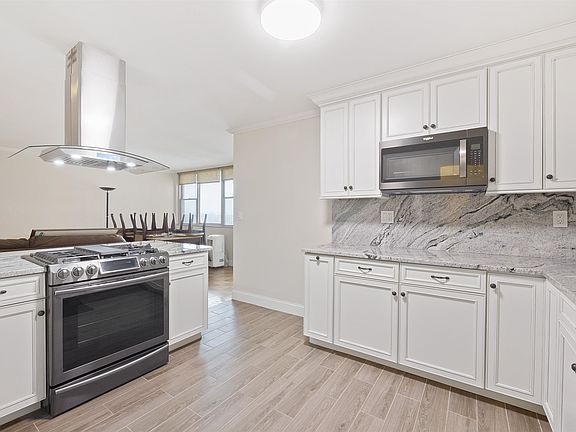YOUR SEARCH ENDS HERE!! This apartment is bright and spacious with large living room/dining area leading out to the extended enclosed terrace which is also great for entertaining. 2 bedrooms, 1 full bath. This unit has been recently renovated with stainless steal appliances and kitchen island. Parquet wood floors throughout. Riviera Towers is a luxury community offering 24-hour concierge, pool, fitness center, convenience store, BBQ area, on-site laundry, and valet parking. Close proximity to NYC transportation at the front door (approximately 15-minute bus ride to midtown Manhattan), convenient to parks and shopping. All utilities are included in rent. Must have renters insurance, Tenant responsible for first $100 of every repair, tenant responsible for 100% of repair due to negligence or caused by tenant, NO PETS, Parking is $150/month (waiting list), gym is $220/year, access to amenities.