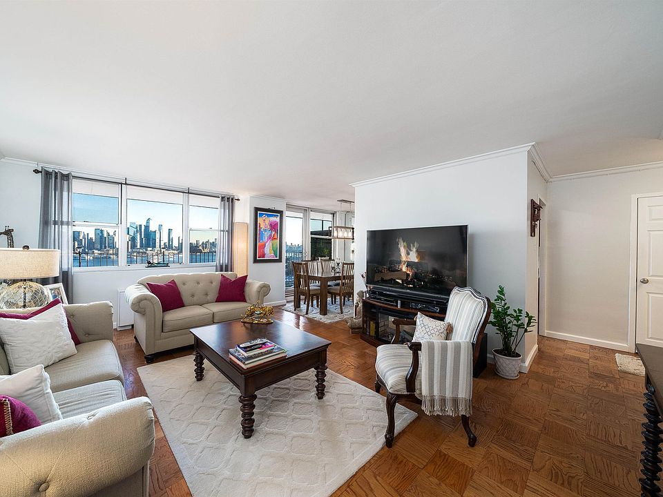 Breathtaking Manhattan skyline and river views from every window of this sophisticated residence. This renovated and well kept one-bedroom home boasts hardwood floors throughout, a kitchen with ss appliances, a walk-in closet for ample storage and an expansive private 200 SqFt terrace. Nestled within the prestigious Riviera Towers on exclusive Boulevard East, this luxury community offers a wealth of amenities, including 24-hour security, concierge services, valet parking, a sparkling pool, a fully equipped gym, and on-site conveniences such as parking, an ATM, a convenience store, and dry cleaning. The maintenance fee is all-inclusive, covering real estate taxes and all utilities, ensuring a worry-free lifestyle. Located steps from shopping destinations like Whole Foods and Trader Joe's, as well as charming cafes and fine dining restaurants. Enjoy a short commute to NYC with public transport at your doorstep.