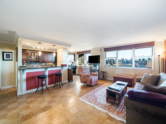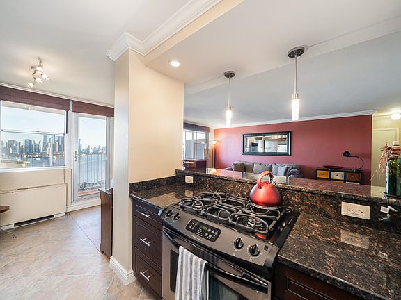 STUNNING VIEWS FROM EVERY WINDOW OF THIS JEWEL BOX HOME AWAIT YOUR ARRIVAL!!! Perfect in every way, this rare SE facing EXECUTIVE STUDIO with ever changing picture perfect wall paper featuring the BEST of the MANHATTAN SKYLINE await one lucky new owner!!! Completely renovated from top to bottom with an OPEN CONCEPT chef's kitchen perfect for entertaing, 23F is the ideal city home or pied-a-terre. Entertain your friends or keep the view all to yourself! The lovely gem is capped off with a luxurious spa bath and 140 SQUARE FEET of private outdoor space to enjoy a morning or evening respite and drink in the CITYSCAPE. All located in a full service builidng with 24 door staff, on-site pool and gym, on-site convenience store and on-site parking for guests and residents. Minutes to NYC via both private and public transportation, come and make this your home today!!!