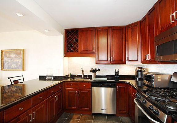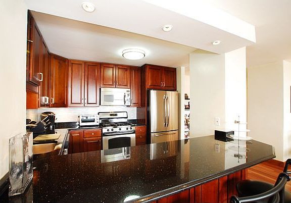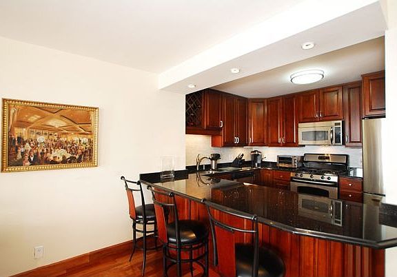 Stylish living & exquisite 180 Degree Manhattan views await you in this rarely available layout at Riviera Towers. Unparalleled views of Manhattan and the NY Harbor shine through every window. Fine finishes are in place throughout including cherry plank floors, cherry cabinetry, and stone counter tops. The open kitchen has been upgraded and offers modern lux cabinetry, Black Galaxy Granite, & the Ultimate Stainless Steel appliance package. MOD bath features sleek MOD Tile with natural stone accents. Entertain guests in style on your private 200 sq ft private terrace overlooking the Hudson River. Building amenities include 24-hour door staff, assigned resident parking ($115 per month), guest parking (for a fee), vast swimming pool & deck, on-site gym ($200 per person), & on-site sundry store. NYC transportation is literally at your front door