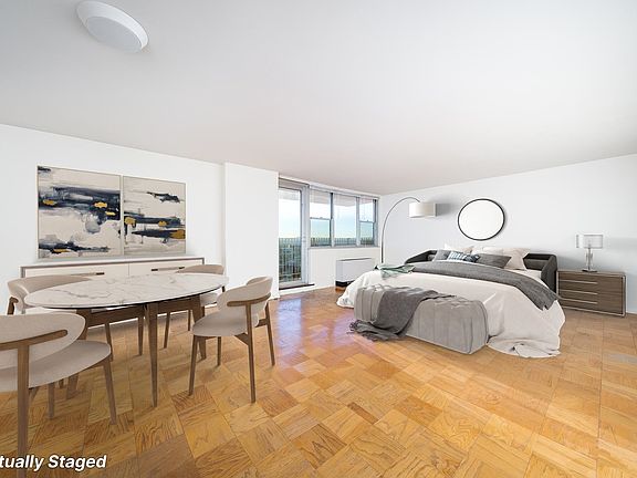 Generous 650 Square Feet of Luxury Square Footage await your personal touches!!! The largest studio layout at Riviera Towers can easily be converted into a Junior One Bedroom with some small modifications!!! 24K offers a large separate kitchen with acres of counter space that can be opend up for the MODERN LIFE STYLE. This charming unit also features a vast array of closet space and 150 Square Feet of PRIVATE OUTDOOR SPACE. All located in a full service builidng with 24 door staff, on-site pool and gym, on-site convenience store and on-site parking for guests and residents. This unit has been lovingly maintained by both the landlord and the meticulous tenant!!! As a bonus, the owner has just installed a BRAND NEW HVAC system for your use and comfort!!! Minutes to NYC via both private and public transportation, come and make this your home today!!!