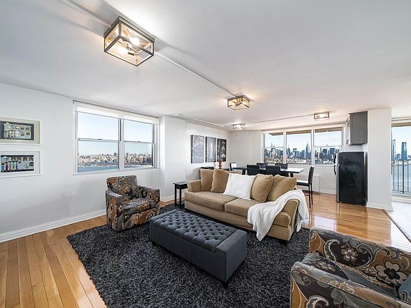 Unparalleled NYC and Hudson River Views. Welcome to Residence 27C, a rare opportunity to own a meticulously renovated and spacious 3 BR | 2 FBTH home in a distinguished full-service building. Spanning approximately 1,850 square feet, this exquisite residence is situated on a high NE corner, one of only six units of its kind—offering an additional 300 square feet of private outdoor space with breathtaking panoramic views. The expansive living area seamlessly flows into a modern, renovated kitchen, thoughtfully designed to maximize both functionality and style. The primary en-suite bedroom features an oversized, spa-inspired bathroom and a customized walk-in closet, while two additional generously sized bedrooms provide unobstructed skyline and river vistas, creating a true sanctuary in the sky. Residence 27C is designed with expansive interiors and ample storage space, ensuring both comfort and convenience. Located within the prestigious Riviera Towers on Boulevard East, residents enjoy a suite of premier amenities, including a 24-hour concierge, a fitness center, outdoor pool, on-site parking (available for an additional fee) and on-site convenience store. For added value, the maintenance fee includes real estate taxes, electricity, air conditioning, heating, gas, hot and cold water, and pool access, offering a seamless living experience. Ideally positioned for an effortless commute to NYC, this prime location is surrounded by an array of restaurants, cafés, parks, tennis & pickle ball courts, and retail establishments, ensuring both convenience and an elevated lifestyle. Don’t miss this extraordinary opportunity to own a luxurious residence with unparalleled views and world-class amenities.