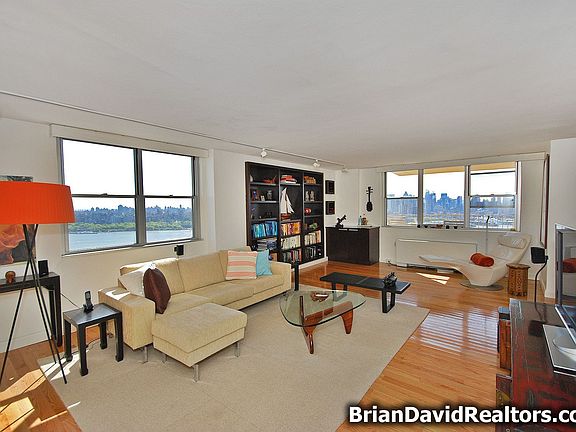 Absolutely amazing 2 Bedroom 2 Bathroom with breathtaking views of the Harbor and New York City Skyline at super luxurious Riviera Towers. To begin, your new home features a stunning entry way with custom Espresso and sliding glass doors and a cubby seat designed for easy shoe removal. A stunning golden oak plank floor glides you from the entry way of your new home into the vast open kitchen and dining area. The ultra contemporary Espresso cabinetry, slate floors and Kitchen Aid appliances facilitate the whipping up of meals. Your vast living area is impeccably designed with views from the George Washington Bridge to the Verrazano Narrows Bridge and everything in between. The coveted double exposure in the living room allows for the play of light throughout the apartment and offers unprecedented views of the New York metro region. A custom dry bar in the living room is perfect for entertaining. The ease of your new lifestyle continues with the Master suite with separate shower & Jacuzzi tub and endless space to relax. The Master suite also offers you views of the Upper West Side and Hudson River. The package is completed with the guest bedroom/office and the 2nd renovated bath with separate shower stall & vanity. The impeccable unit is located on super convenient Boulevard East in Riviera Towers. Riviera Towers is a full service high-end co-operative building. Your new home offers a 24 Hour doorman, 24 Hour car valet, on-site parking, on-site gym, Olympic Sized pool & too many other amenities to mention. This is one that you do not want to miss!