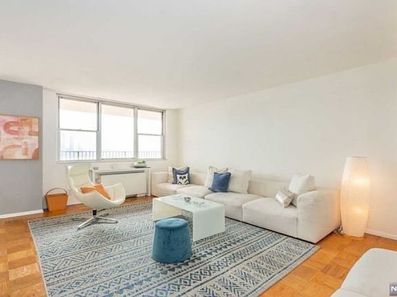 ONE. OF. A. KIND. THIS SOPHISTICATED HOME AT DISTINCTIVE RIVIERA TOWERS AFFORDS SHELTER-MAGAZINE-WORTHY GRACIOUS LIVING! SATURATED WITH NATURAL SUNLIGHT, THIS IMPECCABLE UNIT PROVIDES ABSOLUTELY STUNNING HUDSON RIVER NYC VIEWS. UPDATED, FULLY-EQUIPPED KITCHEN WITH CHIC BLACK STAINLESS APPLIANCES AND PLENTIFUL CABINETRY. THE SUBSTANTIAL LIVING ROOM ACCOMMODATES ALL YOUR ENTERTAINING NEEDS. AMPLE SEPARATE DINING AREA, TASTEFUL GLOSSY WOOD FLOORS, ABUNDANT CLOSET SPACE, NEWER HVAC UNITS. THE PRISTINE FULL BATH OFFERS WHITE SUBWAY TILE AND FRAMELESS TUB SHOWER ENCLOSURE. SUMMERS, RELAX ON YOUR OVERSIZE TERRACE AND ENJOY THE EVER-CHANGING NYC HUDSON PANORAMA WITH A GLASS OF WINE IN HAND. RIVIERA TOWERS IS A FULL-AMENITY HIGH-RISE WITH 24 7 CONCIERGE, AVAILABLE FEE-BASED PARKING, ON-SITE MANAGEMENT, OUTDOOR POOL DECK WITH BBQS, EXERCISE ROOM (FOR A NOMINAL ANNUAL FEE) AND MYRIAD, QUICK NYC TRANSPORTATION OPTIONS AT ITS FRONT DOOR. DON'T MISS OUT - COME VISIT YOUR NEXT HOME ASAP!