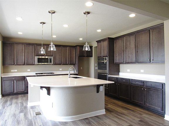 This Hemingway floor plan features a great room with stone fireplace, a well-appointed gourmet kitchen with an extended island, a private study and a luxurious master suite. This plan is personalized with French doors in the study and a large sunroom off the kitchen. The finished walk out basement has a bedroom, 3/4 bath, a large recreation room and a rough-in for a wet bar. Additional upgrades include 9 ft ceilings and 8 ft doors on the main floor, coffered ceiling in the master, and an insulation upgrade. The covered patio and deck offer two outdoor living areas so you can enjoy the open space views behind the home. This home is move-in ready NOW! Crystal Valley Ranch has much to offer, featuring miles of trails, wide open vistas, multiple parks, the pinnacle recreation center that includes a fitness center, and the community pool and clubhouse. Also, conveniently located with easy access to shopping, dining, and historic downtown Castle Rock.