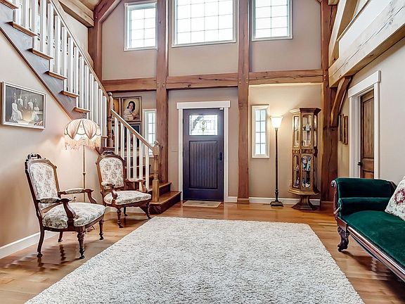 *RARE FIND* This GORGEOUS true timber frame home is move in ready and sits on 6+ wooded acres on a newly paved road. Only 30 minutes to Polaris and 1.5 miles to I-71 yet sit on your front porch and not see another house! Soaring ceilings and oak floors greet you as you enter. Two-story great room and adjoining dining room flow to gourmet kitchen includes double ovens and beautifully unique granite countertops. Sit on the enclosed four-seasons porch and watch the wildlife. First floor owners suite with free-standing tub. Second floor boasts bedroom with en-suite bath and large loft that would easily convert to a 3rd bedroom. Oversized 2-car garage and shed provide ample storage. Too many recent upgrade to list!