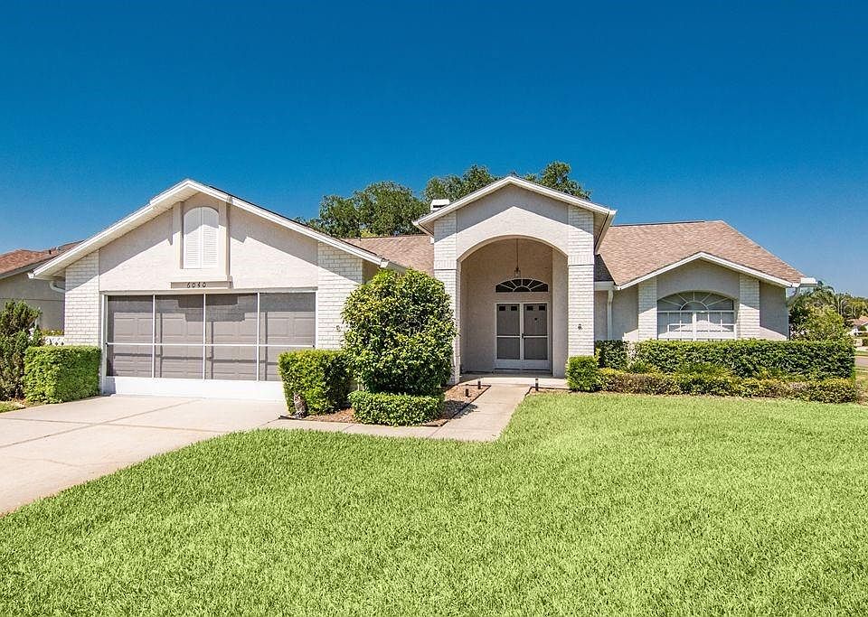 TIMBER GREENS - 55+ community...HOME WITH GREAT VIEWS OF THE POND AND SPACIOUS CORNER LOT...3 bedroom, 2 bath, 2 car garage home. This home features a spacious great room with wood burning fireplace, open kitchen to great room and spacious nook overlooking pond, inside laundry room, split bedroom plan, a screen porch and patio...and so much more