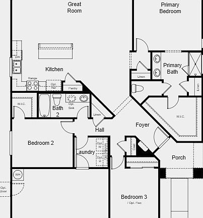 REPRESENTATIVE PHOTOS ADDED. July Completion - Introducing Plan 2, a single-story floor plan spanning 1,747 sq. ft., featuring 3 bedrooms, 2 bathrooms, and a 2-car garage. Step into the foyer and enter the spacious gathering room and kitchen area, ideal for cooking and socializing. The open casual dining and gathering area flow effortlessly to the outdoor living space, perfect for entertaining. The flexible 3rd bedroom offers various usage options, while the 2nd bedroom provides privacy opposite the primary bedroom. Welcome to your new home! Structural options include: bay window in primary bedroom.