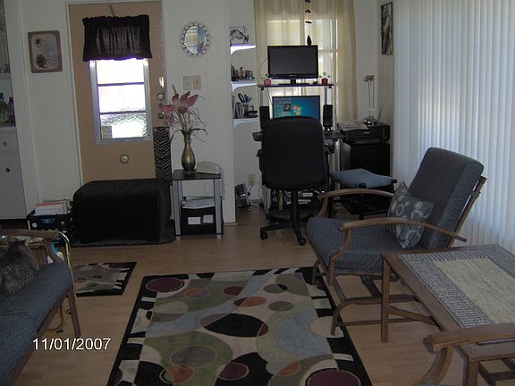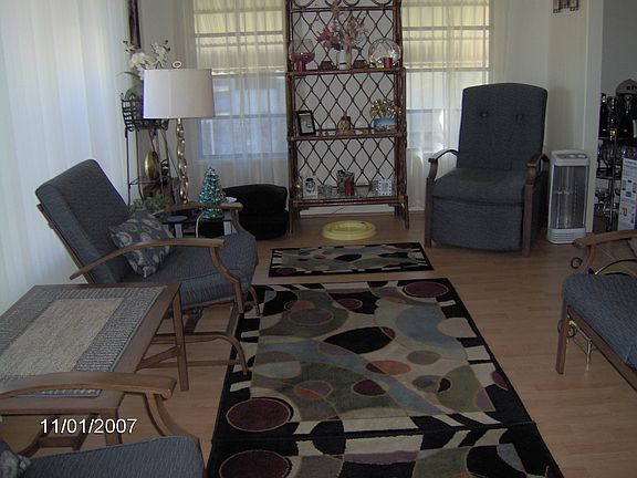 DOUBLE WIDE ( 24X46) MOBILE HOME, 1100 Sq. Ft., AC/Heat Unit and Duct Work one year old. Entire Mobile home painted 2 years ago Outside Painted 3 yrs ago. 3 Ceiling Fans. Walk in Closets in both bedrooms. 55+ Community, Clubhouse (with lots of activities), Exercise Room, Library, Heated Pool, Stove, Refrigerator, Built In Microwave, Garbage Disposal, Washer and Dryer Stay. Lot Rent $551.00/month Lot rent includes, water, grass cutting, trash removal.