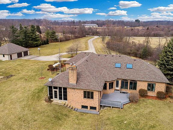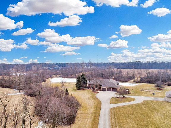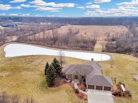 EXECUTIVE ESTATE on 13.9 acres with 1.25 acre stocked pond (bass and bluegill), a detached 38x32 outbuilding, and a 16x14 enclosed porch with built in grill. This all brick 2731 sq ft ranch was quality built by Cal Klopfenstein with 2x6 exterior walls, and boasts an additional 2731 sq ft daylight basement. Newer granite counter-tops, center island, formal dining with trey ceiling, split bedrooms, family room with fireplace, large master bedroom suite with jetted tub, separate shower, walk-in closet, large utility room, patio, underground fence (approximately 3-4 acres fenced for dog) attached 3 car garage. The finished basement has an additional kitchen with range, refrigerator and microwave, family room, office, craft room plus 2 bonus rooms with closets and window, and loads of storage. Ideally located on popular Hursh road, Leo schools, minutes to Parkview and DuPont hospitals and I-69 /1-469. An additional 16 acres can be purchased with this property.