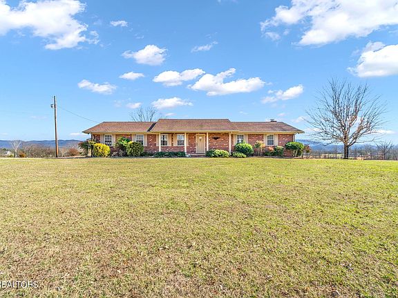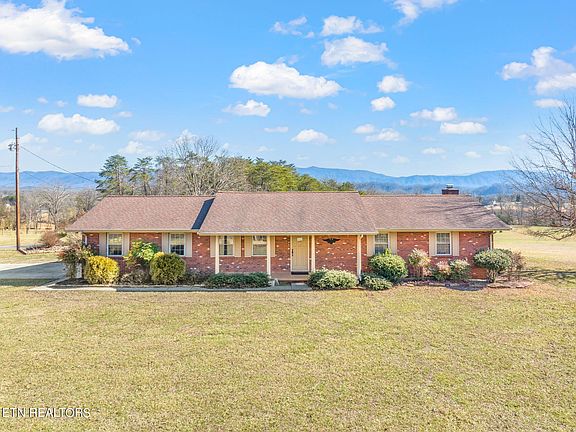 Enjoy some the best mountain views available in the foothills of the Smokies! Situated on over 11 flat acres, this classic basement brick rancher is primed for a new owners touch. First time ever on the market, this home features a a semi-open floorplan which is great for entertaining. A large completely windowed bonus room allows great views of the surrounding countryside. The primary bedroom has been enlarged with two walk-in closets, however, it can be easily converted back to an additional bedroom. The full walkout basement features a separate laundry, kitchenette, and massive bonus room. A third garage bay downstairs and plenty of unfinished square footage provide plenty of space for a workshop. Come make this your home today!