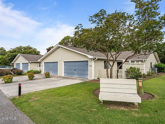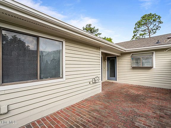 This end-unit townhome offers a low-maintenance lifestyle, with views of the Inland Greens golf course, and resort like amenities. Enter through a private brick courtyard into spacious, open living areas with vaulted ceilings and skylights that flood the space with natural light. The cozy living room, complete with a fireplace, flows seamlessly into a sunroom where you can relax while taking in the beautiful golf course views. The dining area and breakfast bar provide ample seating for gatherings and meals.The primary bedroom is a peaceful retreat with dual closets, an ensuite bath, and direct access to the sunroom. A second bedroom is conveniently connected to a full hall bathroom, while the third bedroom, located at the front of the home, opens to the patio and would also make an ideal home office. The front-facing two-car garage provides convenient access, and the location is perfect—close to Wrightsville Beach, UNCW, and a variety of shopping and dining options. The community amenities, including a clubhouse, pool, playground, jogging/walking trail, pickleball and tennis courts, and an RV/boat storage lot.