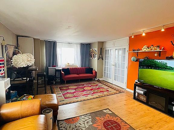 Beautifully renovated convertible loft-like two bedroom apartment with a separate nursery/den/home office in a wonderful full-service building with concierge, pool, gym and many more other amenities. New finishes. Double exposure and unforgettable views! Chef’s kitchen with stainless steel appliances. Huge terrace, partially enclosed so you can enjoy it during cold months as well. Parking is in the building and it’s only $115 a month! All utilities included, even internet! Steps away from parks, tennis courts, coffee shops. Great chance of owning your home with close proximity from NYC and paying less than you will pay for rent in the city for a much smaller place! Build your equity! Building just upgraded all the elevators, terrace and a pool! Perfect location! 15 minutes away from the city by bus, ferry or a car. Great opportunity to enjoy New York City views in a serenity of your OWN HOME while having a cocktail by the pool without paying even a fracture of NYC prices.