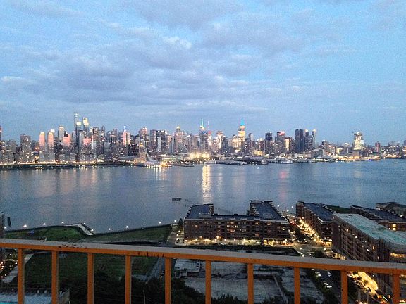 High rise luxury Apt with City views for rent at Riviera Towers. Unobstructed perfect views of Manhattan, South East exposure through every window! Stylish living with open kitchen, white cabinets, granite counter tops, huge living room, and hardwood floor..... This rarely available layout is hard to find. 200 sq ft private terrace, overlooking the Hudson River, is perfect to entertain guests so is the outdoor Olympic size pool. Indoor garage parking $115/month and $200/year for gym membership. Riviera Towers offers 24 hr. concierge, on-site pool, gym, storage, resident parking, valet parking for your guests, private laundry service & NYC bus at doorstep. Only 5.5 miles from Midtown Manhattan! This is an opportunity not to be missed. Owner pays heat, hot water, electricity.