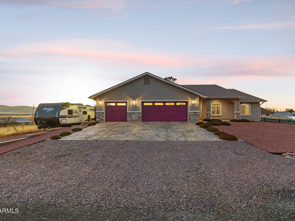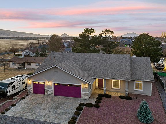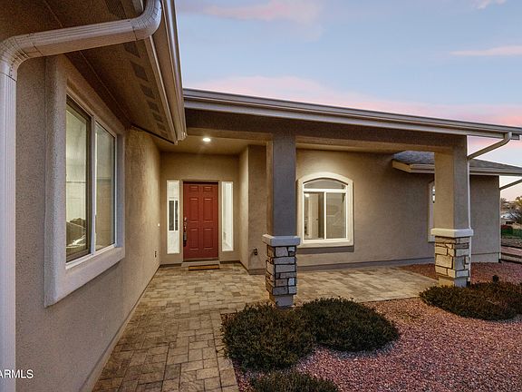 Outstanding Semi-Custom Ranch/ADA Friendly by Dan Warta Construction featuring 1845 Square Feet with 3Bedrooms/3Bathrooms/3CarGarage on Quiet Cul de Sac & has Incredible VIEWS in northern Prescott Valley!!! Private Back Yard w/ New 6' Privacy Fence Just Installed!!!! Amenities include GREAT ROOM CONCEPT, Vaulted Ceilings, Wood Plank Tile + 18'' Tile throughout, 2 Tone Paint, HoneyComb Blinds, Ceiling Fans, & is very Bright. Kitchen is well appointed with Gray Shaker Cabinetry, GRANITE Countertops, Under Cupboard Lighting, Quality Black Kenmore Appliances (Inc. Fridge Gas Range, Micro, Dishwasher), ISLAND, and Pantry. Master is Spacious with Dual Sinks under GRANITE Countertop, ''ROLL IN'' Shower w/Tiled Surround, Big Walk In Closet, & has Patio Access. Guest Bedrooms are also quite spacious, has a Massive Laundry Room with Laundry Sink Folding Area, Powder Room, with Washer/Dryer conveying, has Stacked Stone Accents, Paver Driveway/Walkway, Epoxy Floor in 3 Car Garage, Covered Front Porch, Huge Wrap Around Covered Back Patio, Wrought Iron Fenced Back Yard, RV PARKING, and VIEWS of Mingus Mtn, Bradshaw Mtn, & Glassford Hill!!! Home is in Turn Key Condition and is Priced to Sell !!!!