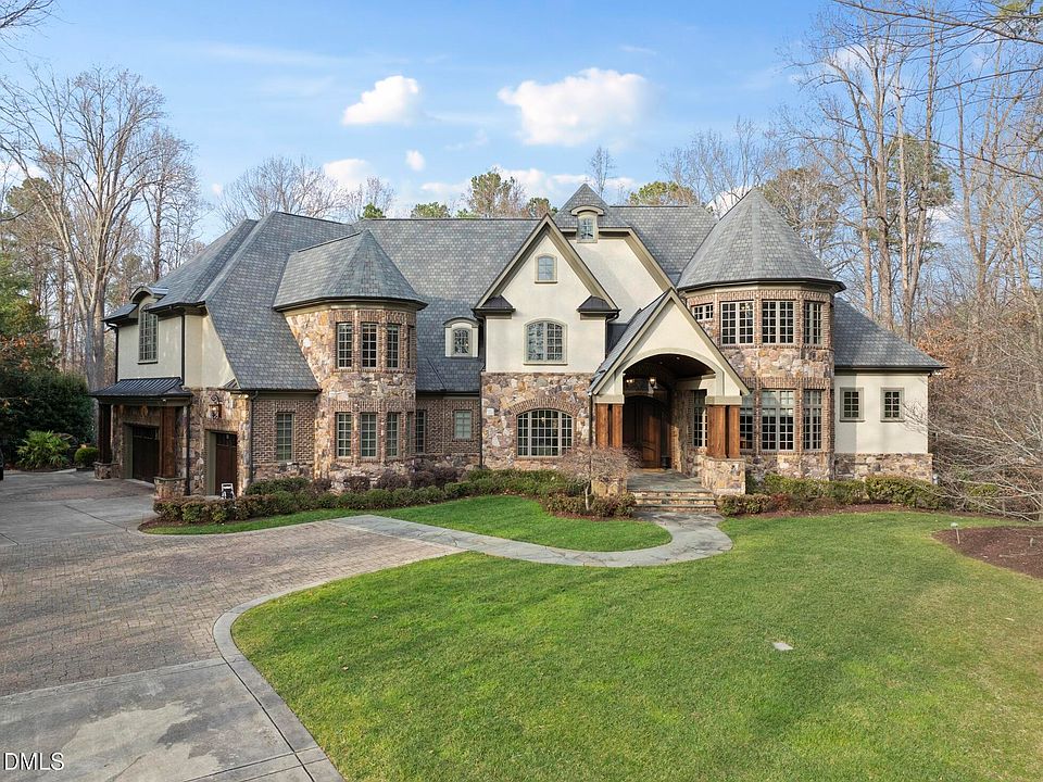 Tucked away off of Norwood Road, 6040 Over Hadden Court offers an exceptional blend of timeless elegance, thoughtful design, and everyday comfort. This distinguished residence is perfectly positioned for those seeking privacy without sacrificing proximity to Raleigh's premier shopping, dining, and conveniences. This 1.69 acre estate presents a rare opportunity to own a distinguished residence in one of Raleigh's most desirable settings backing to Falls Lake. Step inside to discover light-filled living spaces enhanced by refined finishes and graceful architectural details. The home's layout effortlessly balances formal and informal areas, creating an inviting atmosphere for both intimate moments and upscale entertaining. Every space has been carefully considered to provide warmth, flow, and functionality. Anchoring the home's modern appeal, the kitchen and primary bath underwent elegant renovations in 2024, resulting in spaces that feel both current and enduring. At the heart of the home, welcoming living areas encourage connection, while private retreats offer peaceful escapes at the end of the day. Whether hosting guests or enjoying quiet evenings, this home adapts beautifully to every lifestyle. The fabulous kitchen is a refined statement of luxury, showcasing bespoke floor-to-ceiling cabinetry and expansive stone surfaces that blend form with function. Dual islands anchor the space, offering generous room for culinary artistry, casual dining, and elegant entertaining. Professional-grade appliances are seamlessly integrated for a clean, sophisticated aesthetic, while a custom range hood and designer lighting introduce subtle architectural drama. Rich hardwood flooring and impeccable finishes complete the space, creating an atmosphere that is both polished and inviting. The floor plan is well designed with a first floor Primary Suite, multiple studies, exercise room, home theatre, multiple bonus rooms, room for a grand piano, wine cellar, 4 car conditioned garage and 6 bedrooms plus 6 full and 3 half baths. The outdoor entertaining areas and in-ground pool are all on the ground level - no need to go down to the basement level to access these amenities! The home is topped with a 2023 Atlas StormMaster® Slate roof, selected for its slate-inspired design, durability, and refined curb appeal. Serene outdoor spaces extend the living experience, ideal for morning coffee, alfresco dining, or unwinding under the Carolina sky. Mature surroundings enhance the sense of calm and seclusion. The outdoor living experience is nothing short of extraordinary. An elegant resort-style infinity pool anchors the setting, surrounded by natural stone hardscaping and thoughtfully designed landscaping that blends seamlessly with the wooded backdrop. Evening lighting casts a warm, inviting glow, transforming the space into a private oasis as day turns to night. Enjoy the rare combination of a tranquil residential setting backing to Army Corp of Engineer Land and Falls Lake with convenient access to major corridors, top-rated amenities, and the best of Raleigh living!