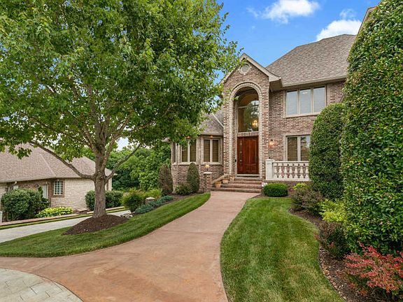 A true custom gem on one of the best lots in Millwood! Sellers are the original owners, and their pride is evident in the attention to detail and immaculate care of this home. Sitting on a premium lot on a quiet cul de sac, this walkout basement home backs up to the 11th fairway of the golf course, with no neighbors behind! Owners' commitment to quality, high-end construction shows in the all brick and natural stone (no cast or cultured stone!) exterior, newer 50-yr roof, 2x6 exterior walls, and all Douglas Fir framing! Stately foyer opens to sky-high ceilings in main living room, and double-sided gas fireplace leading into kitchen. Kitchen features massive island with seating, pantry, breakfast nook, double ovens, trash compactor, gas/electric combo cooktop, and built-in fridge. Beautiful oak woodwork is showcased throughout the home, including the formal dining room's coffered ceiling and the office's vaulted ceiling (and secret paneled door to master bedroom!). Rounding out the main level is a guest bedroom and full bathroom, extra half bath, and spacious master bedroom with stunning tray ceiling mural! All wall/ceiling treatments are custom painted; NO wallpaper here! Second level offers 3 huge bedrooms, all with walk-in closets. 1 bedroom has full en suite bathroom, the other 2 bedrooms share a Jack-and-Jill bathroom. If you still need extra living space, the walkout basement delivers! Rec/gaming area features wet bar with beverage cooler and fridge, and shares a double-sided fireplace with another generous family room. You'll also find a full bathroom, huge storage area, storm shelter, and hobby/workshop room (with 2nd washer/dryer hookups). Garage space is abundant: 3 oversize stalls on main level (center 10' door), and 4th oversize stall (10' door) in the basement! Finally, take in the views on the expansive back deck or stamped concrete patio! Ozark address but inside Springfield city limits and Springfield schools. Call today for your private showing!