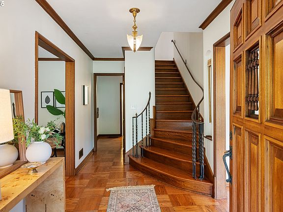 Charming Eastmoreland English Tudor situated on stunning tree-lined street. Thoughtfully maintained, this 4 bed/2 bath home is set back on a 7,900 square foot lot with unbeatable location just a stone’s throw from Reed College with access to arts and entertainment, as well as its best-kept secret 28-acre wildlife refuge. In addition, a few blocks away, there’s the Rhododendron Garden, Springwater Corridor bike trail and vibrant local amenities in Woodstock, Westmoreland, and Sellwood. Enter to original oak floors, grand stairway with wrought iron railing and classic mahogany trim. Main level is ideal for both everyday living and entertaining, featuring primary bedroom and full bath, grand light-filled formal living room centered around gas fireplace and elegant dining room with French doors opening to a lovely terrace. Kitchen has ample storage, freshly painted cabinetry, a sunlit eat-in nook with large window seat that overlooks the rose garden—perfect for enjoying morning coffee and meals. Three bright bedrooms upstairs—one with walk-in closet—and second full bathroom with classic Crane fixtures, including both individual shower and tub. In basement, enjoy spacious family/media room with gas fireplace and separate laundry room. Outside, your own backyard oasis—perfect for relaxing and entertaining with large covered area and deck, established plantings and trees, including a bounty of blueberries, marionberries, and plums. Thoughtful updates include freshly painted interior, new carpet in family room, plus a recently installed HVAC system (2023). With three-car garage, ample storage, and stellar location, this Eastmoreland gem is a rare find. [Home Energy Score = 1. HES Report at https://rpt.greenbuildingregistry.com/hes/OR10239431]