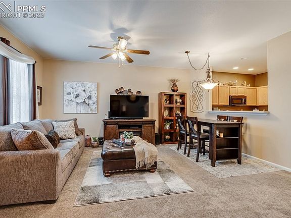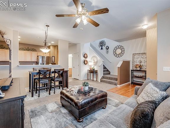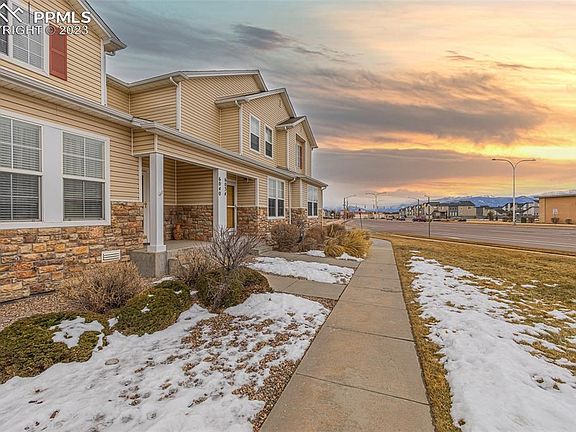Location! Location! Location! Welcome home to this two-bedroom, three-bath, attached two-car garage, two-story townhome in the heart of the Powers corridor with Pikes Peak views! Close to shopping, hospital, restaurants, schools, military installations, and more! The open floor plan on the main level consists of the living/dining area that adjoins the kitchen, complete with a pantry, solid-surface counters, breakfast bar, and stainless steel appliances, including a refrigerator, self-cleaning stove/oven, microwave & dishwasher. A powder room and coat closet complete the main level. The owner's suite has vaulted ceilings, a nice walk-in closet, and an adjoining full bathroom with dual sinks and a separate toilet/shower area. An additional light & bright bedroom and full bathroom, along with the convenient laundry area, complete the upper level. Monthly HOA dues cover trash/snow removal, common area landscaping & exterior home maintenance. Don’t miss this wonderful townhome!