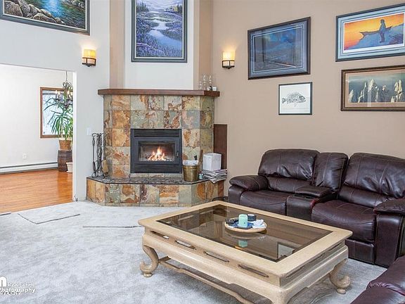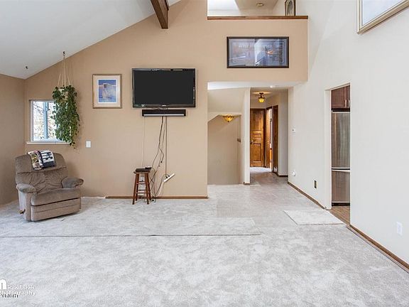 Lots of daylight and a great flow for entertaining! High vaulted ceilings, remodeled kitchen with recessed lighting and soft close drawers, High efficiency fireplace, large master suite with walk in closet, balcony, and remodeled bathroom with deep soaking tub, hardwood floors in dining room and guest room, sauna, mother-in-law potential downstairs, HE boiler, new windows, and more!