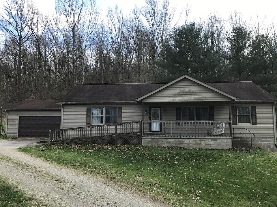 If a private retreat is what you're looking for, this is it. Everything needed for the outdoor enthusiast, hunting on wooded acreage, trails for ATV's, fishing in a stocked pond and access with boat ramp to salt creek, One owner single story home has been very well cared for, 3 bedrooms, 2 baths on main level, large laundry room, kitchen with breakfast bar and dining area. Full walkout basement could be finished for additional living space or used for storage. Covered porch, rear deck, carport, attached 2 car garage and detached pole barn with electric and concrete floor.