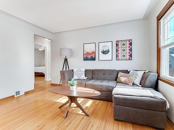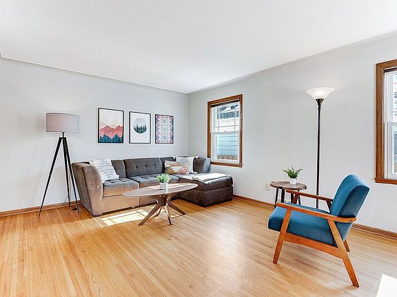 This charming, clean and move-in ready 3BR/2BA home has coved ceilings in the living room, hardwood floors throughout, and a finished basement. Every square inch of this beautiful home has been maximized to be usable and inviting. On the upper level you’ll find two bedrooms, a full bathroom, and kitchen with stainless steel appliances. Boasting a recently remodeled third bedroom, the lower level also features a recently remodeled ¾ bath, and space to relax in a family room. Located in a quiet and friendly south Minneapolis neighborhood within walking distance of multiple parks and a summer-time Farmers Market, this home enjoys a cedar privacy fence (installed 2017 and re-stained 2021) enclosing a naturally shaded backyard and patio. The home is kept warm and quiet with Anderson windows, includes a detached two car garage, and is centrally located near shopping and freeway access.