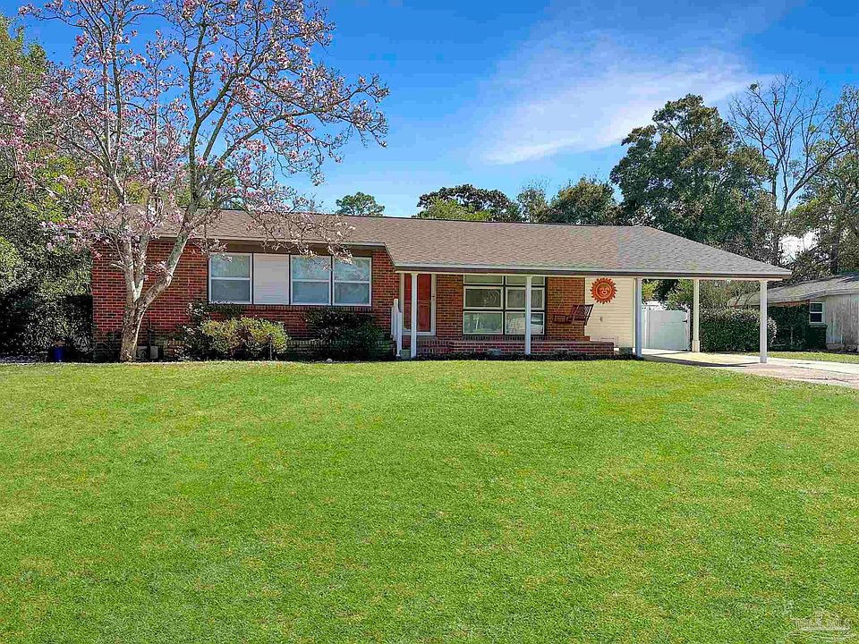 Current Clear 4 Point & Wind Mitigation Inspection Attached. This Scenic Heights home is move in ready. It was converted from a 3/2 to a 2 bedroom / 2 bathroom home. The home can be returned back to a 3 bedroom, if buyer desires. The home is walking distance to Eastgate Park, this home, built in 1958, has been completely updated and modernized. The roof, water heater, HVAC, and appliances have all been replaced within recent years and it has a 100 amp service panel with copper wiring. A red brick exterior contains a carport and porch. Inside the home there is wood floor throughout. The windows and storm doors have all been replaced and provide significant natural lighting and insulation. When you walk in the front door, you enter the living room. Attached is the open concept kitchen/dining area. All the appliances are stainless and updated. Down the hallway is the guest bathroom. The guest bathroom has a tile shower with sliding glass doors. At the end of the hall the primary bedroom is large with an en suite bathroom. This bathroom has been updated as well. Across from the primary is the extra large additional bedroom. The back doors open into the enclosed sunroom. The utility room is off the sunroom and comes with additional stainless fridge and front load washer and dryer. This area is heated and cooled. The back yard consists of a 12’x20’ Trex deck, 12’x10’ cedar gazebo, and a 12’x20’ detached workshop. There is a 4 zone, irrigation system throughout the front and backyard. Sellers have maintained meticulous records. All permits and receipts for upgrades are available for the buyer. Recent wind mitigation report is attached.